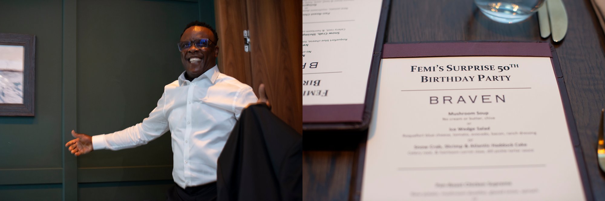 When Femi’s wife, Yemi, contacted me about this surprise party that she was planning at Braven in Edmonton to celebrate Femi’s 50th birthday, I was beyond excited to take photos of it for them.
