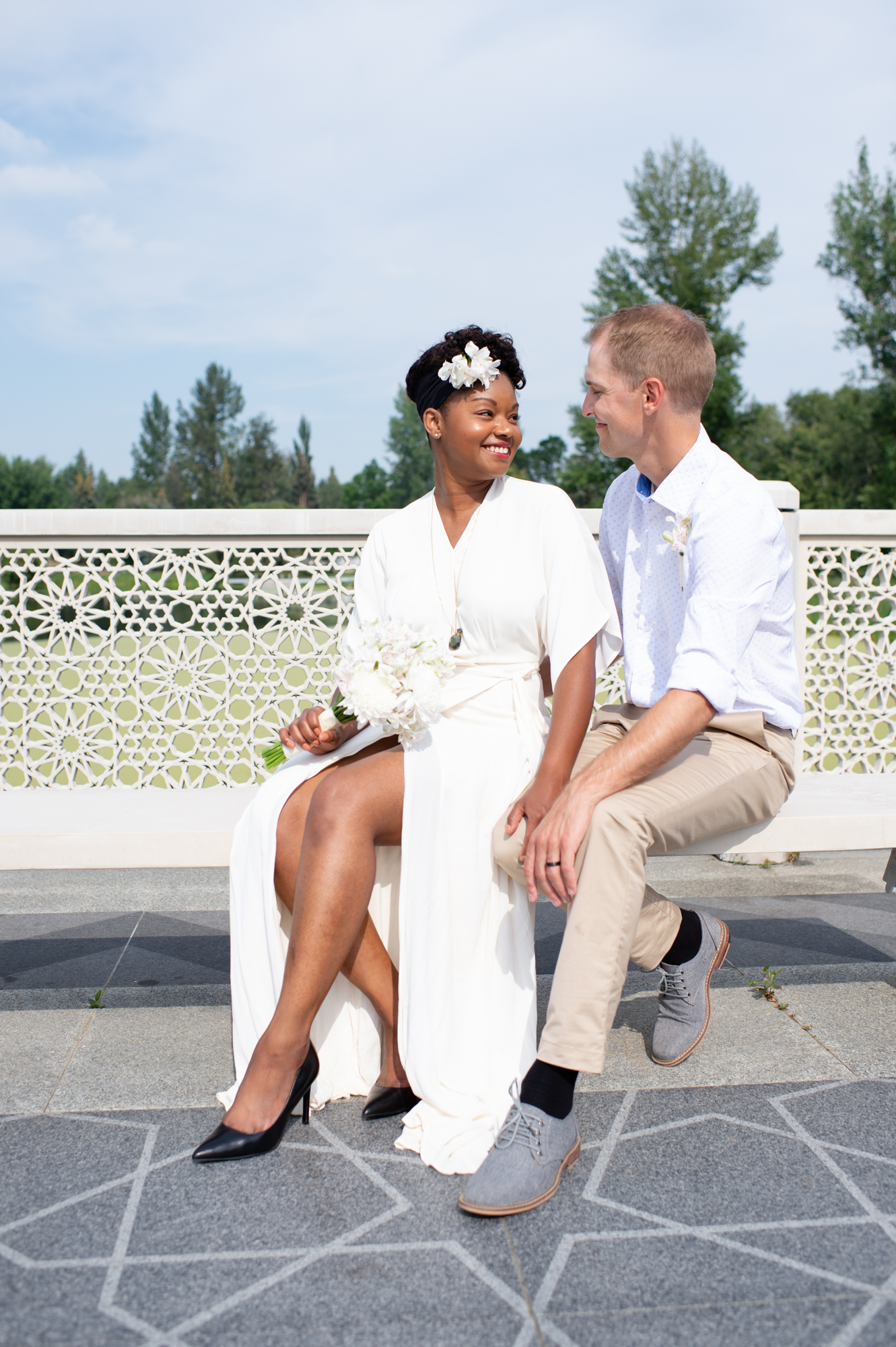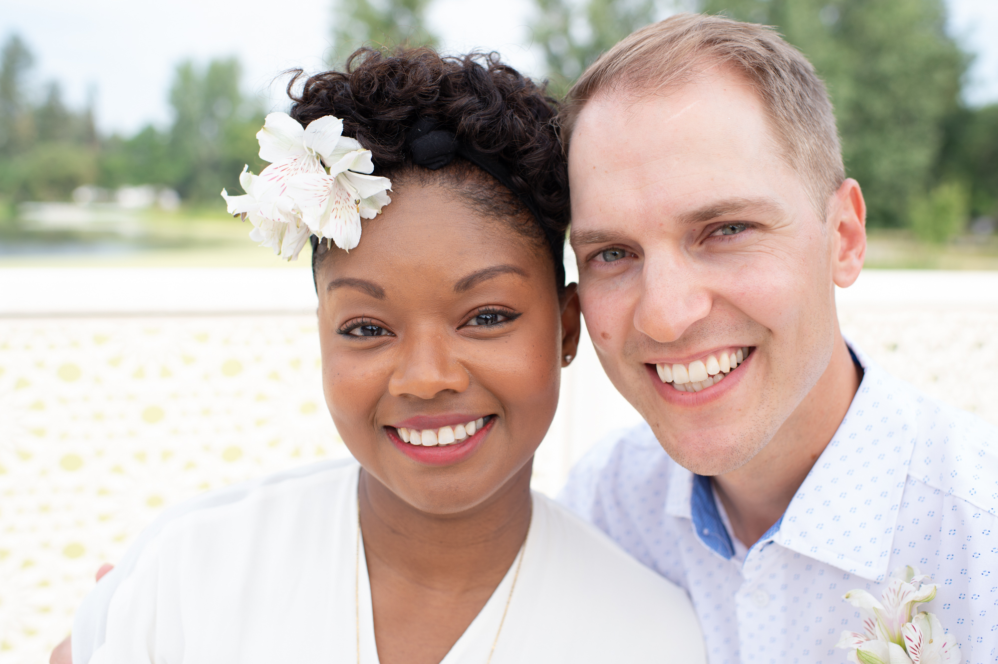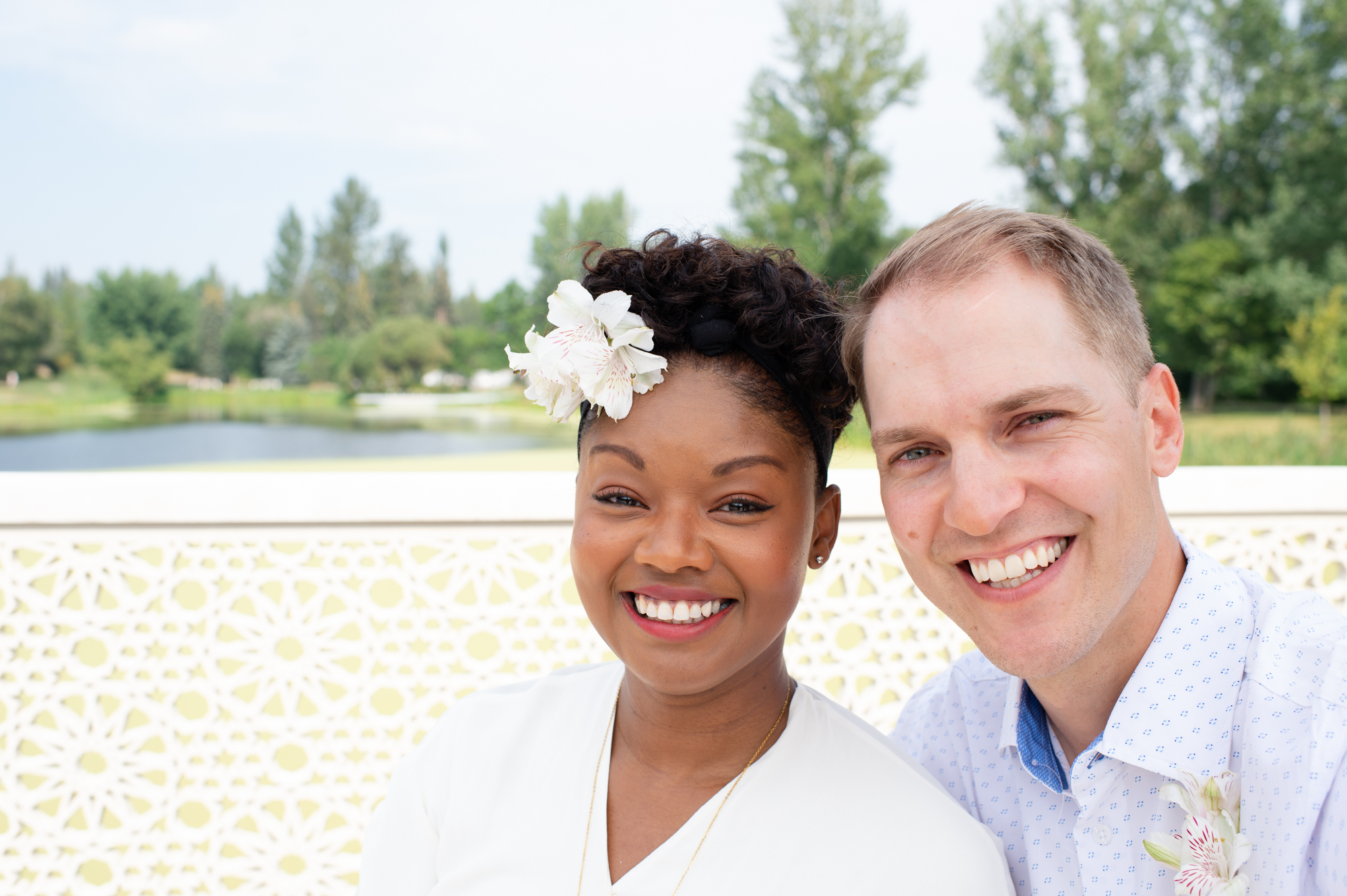 In the heart of Edmonton, a story of love, elopement, and celebration unfolded as Tanara and A.J. embarked on their marital journey. In 2021, amidst the uncertainties of the world, they chose to elope, solidifying their bond in an intimately personal ceremony. Fast forward to 2022, the couple decided to share their joy in a grand, yet homely manner, by hosting a wedding portrait session at the University of Alberta Botanic Garden followed by an elegant backyard reception with their closest family and friends. This event was a celebration of Tanara and A.J.’s journey, love for vintage aesthetics, and a testament to their DIY spirit.