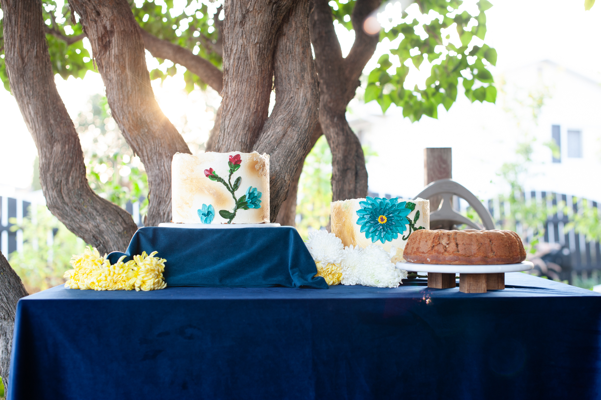 As for the catering, the couple dazzled their guests with an array of homemade delights that looked and tasted amazing. Each dish served was a testament to their culinary skills and their desire to make their loved ones feel cherished through the language of food. Their wedding cakes were hand painted beauties! The entire setup was a picturesque scene right out of a vintage dream, set against the natural beauty of Edmonton.