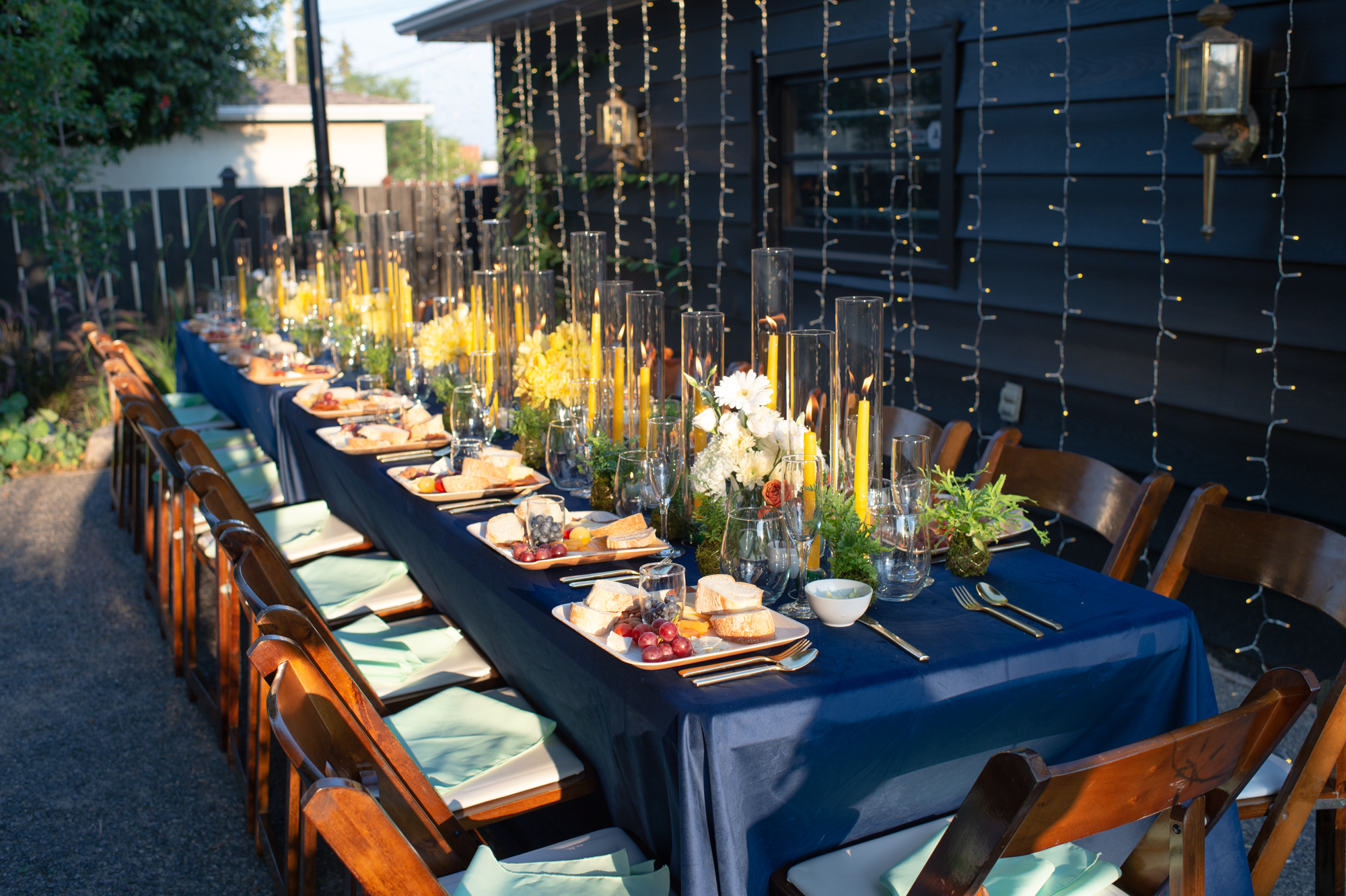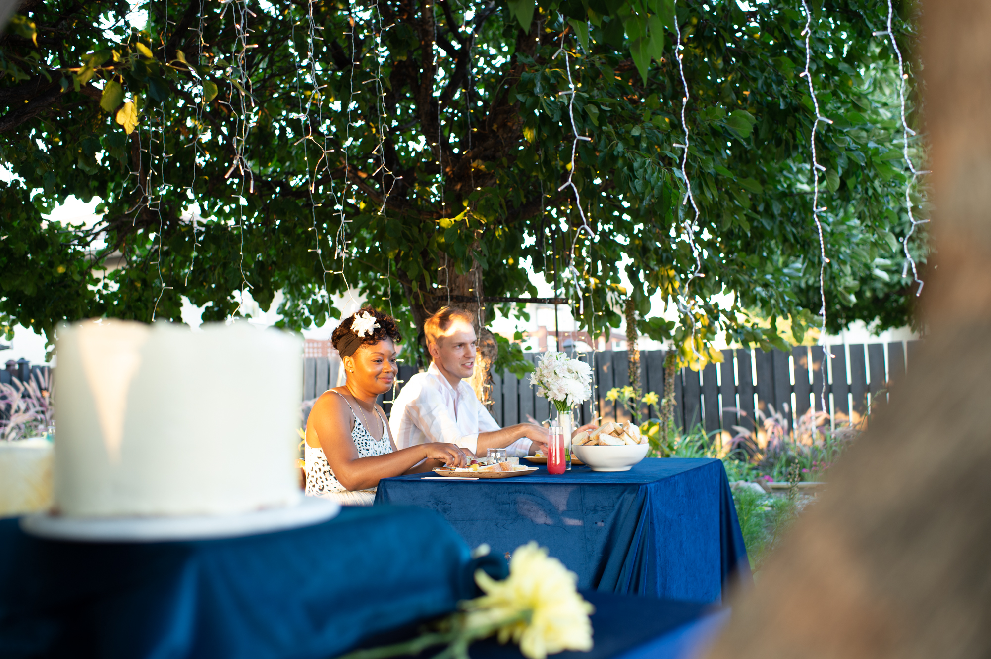 Tanara and A.J.’s commitment to personalizing their celebration extended beyond their attire. Taking a hands-on approach, they undertook the decoration and catering tasks, infusing the reception with their essence and warmth. The DIY decor in their Edmonton backyard reception was visually stunning and imbued the space with a sense of home and intimacy. From floral arrangements to table settings, every detail was carefully curated to reflect their personal taste and the vintage theme.