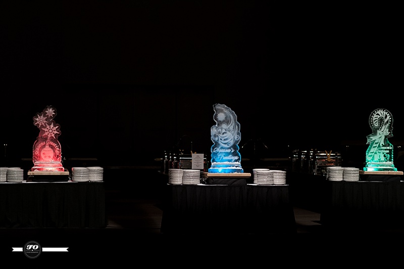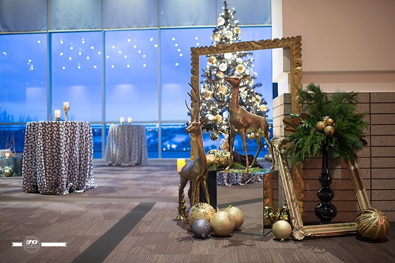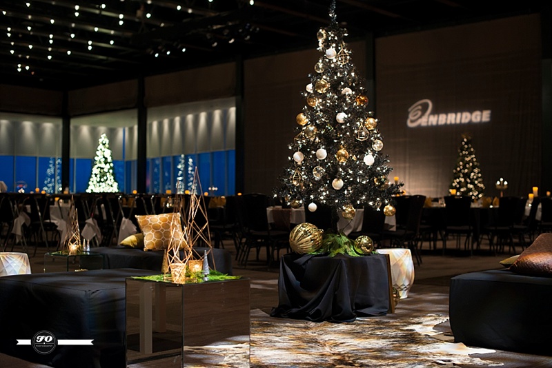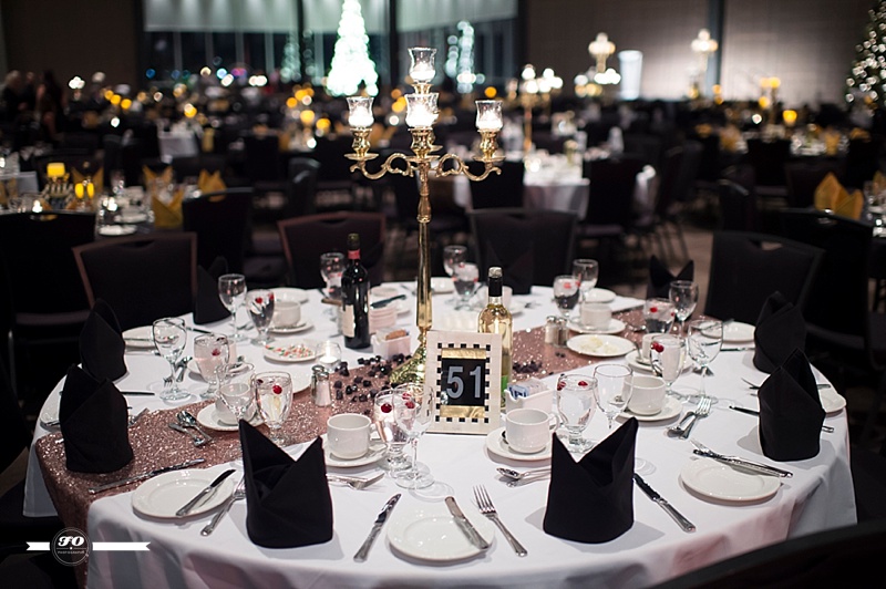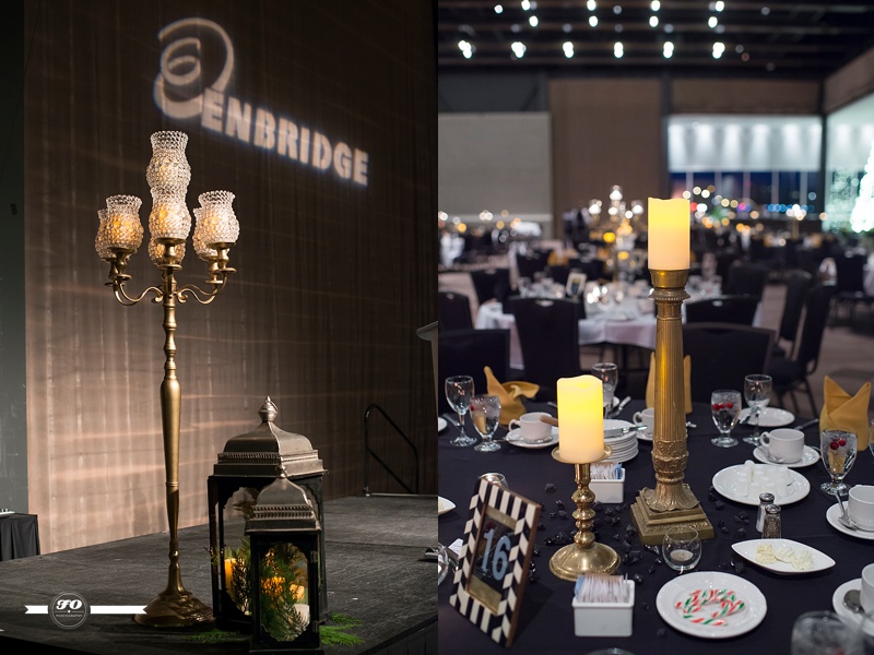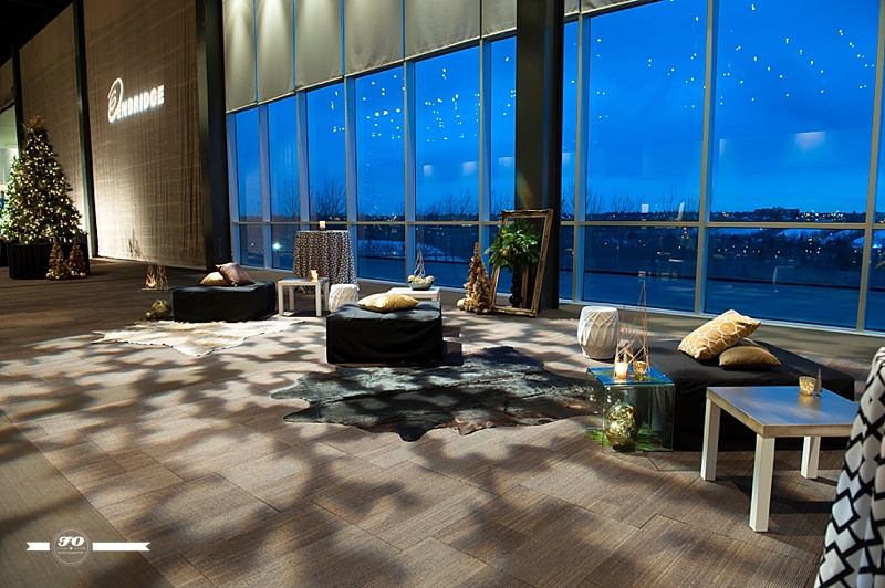 Event Designer & Planner: I-D Bohemia; Floral arrangements & Lamp stands on stage: FABloomOsity; Rentals: Elegant Touches, I-D Bohemia; DJ: Thomas Culture; DJ stage lights: Long & McQuade; Overhead & Gobo Lights: Showtech; Venue: Shaw Conference Centre.